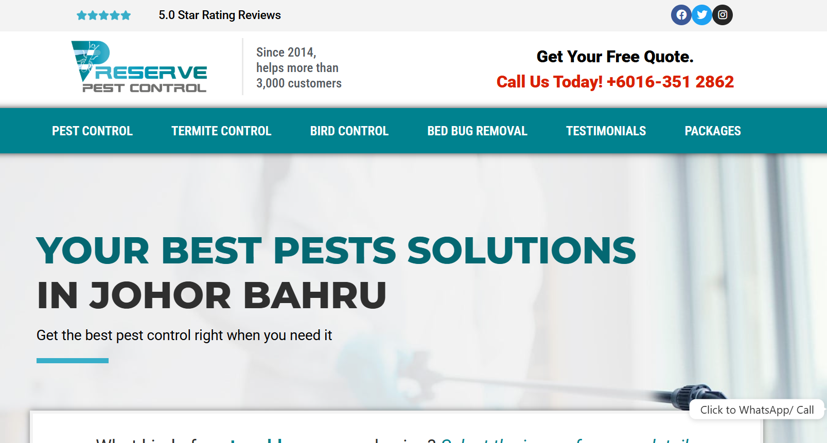 Preserve Pest Control is a locally registered pest control company established in the year 2014 by the founder Mr Ryan Ang. The company is mainly active in South Malaysia, headquartered in Johor Bahru, Johor.